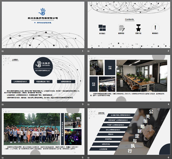 这是一套灰色点线链接背景的,网络传媒公司简介PPT模板,共13张。第一PPT模板网提供精美企业宣传幻灯片模板免费下载;