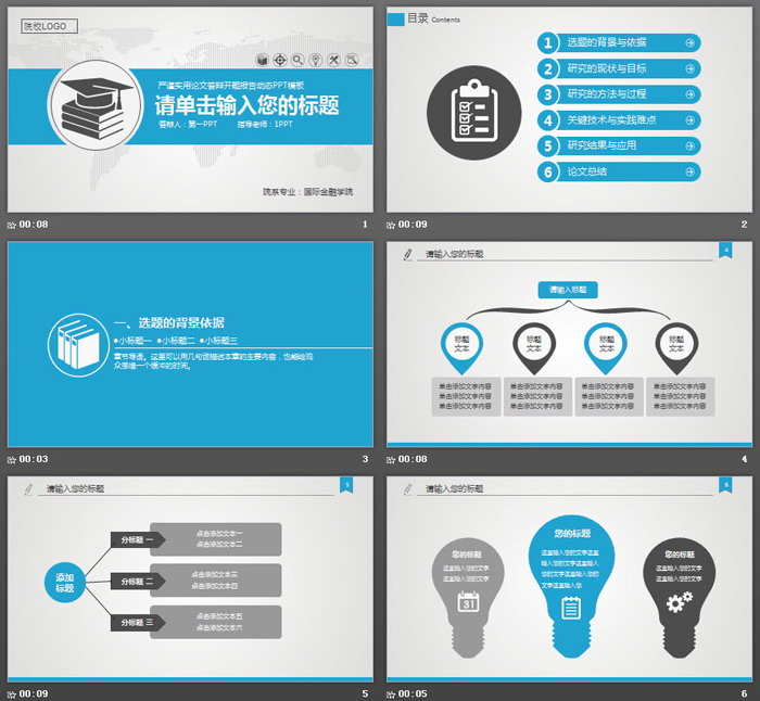 这是一套蓝色动态扁平化设计风格的,研究生毕业论文开题报告PPT模板,共30张。第一PPT模板网提供精美开题报告幻灯片模板免费下载;