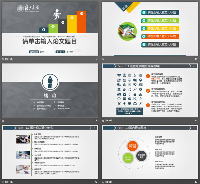 关键词:灰色多边形幻灯片背景图片,彩色扁平化PowerPoint图表,研究生开题报告PPT模板,.PPTX格式;