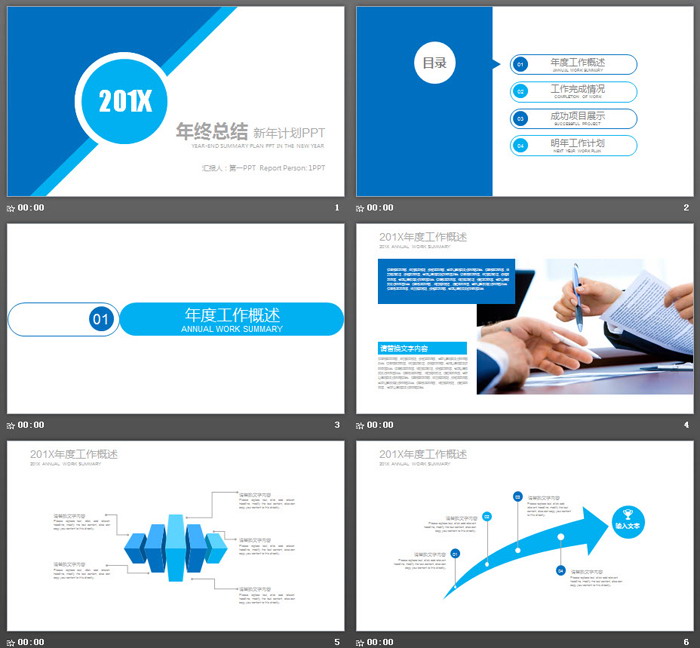 关键词:简洁年终工作总结幻灯片模板,蓝色扁平化PowerPoint图表,动态新年工作计划PPT模板,.PPTX格式;