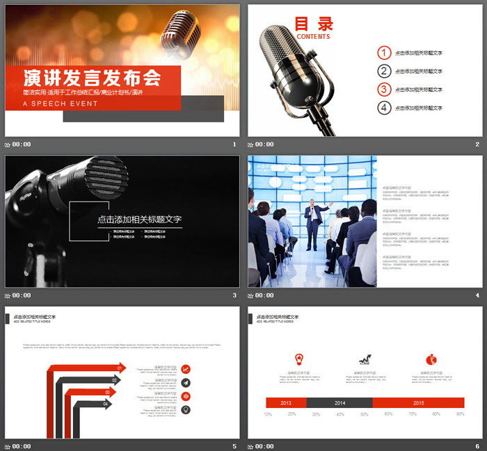 这是一套精致话筒背景的,演讲发言PPT模板,共22张。