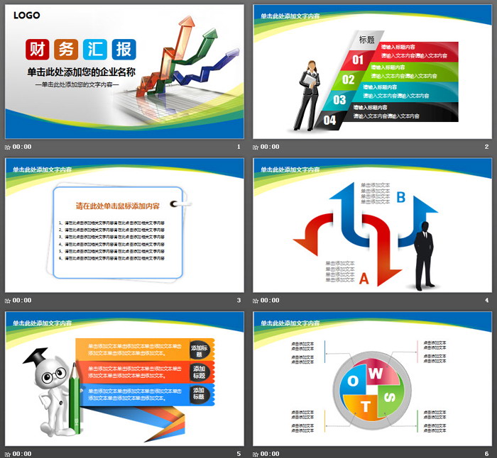 这是一套彩色图表背景的,财务汇报PPT模板,共27张;