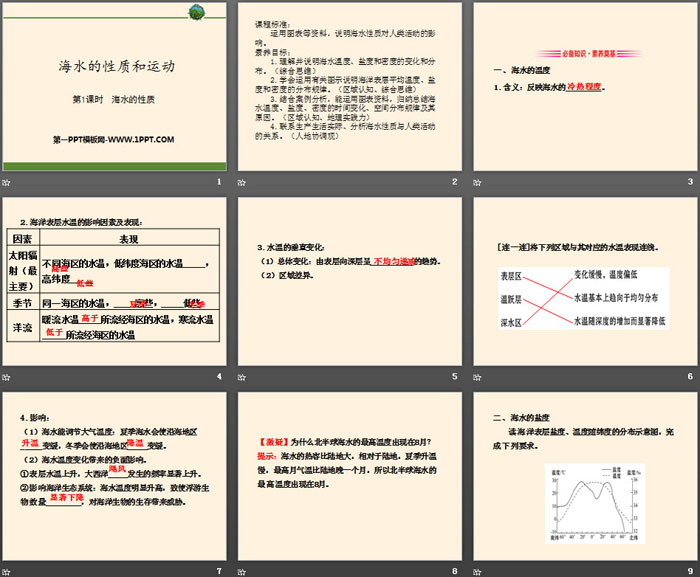 关键词:湘教版高中地理必修一PPT课件免费下载,海水的性质和运动PPT下载,地球上的水PPT下载,海水的性质PPT下载,.PPT格式;
