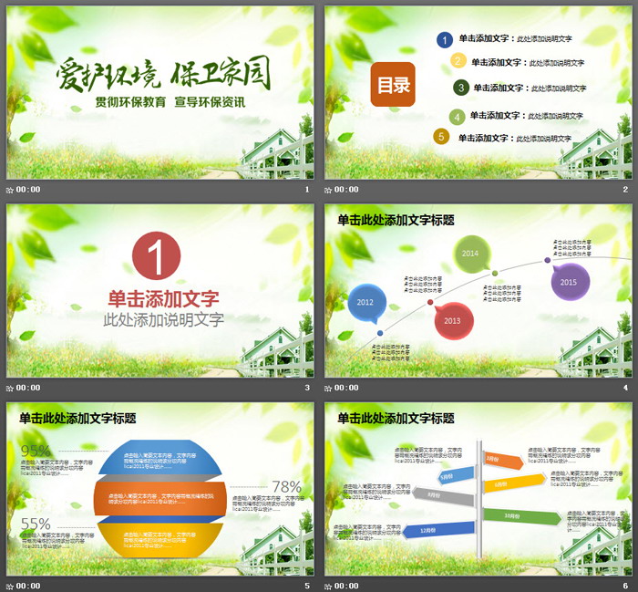 关键词:绿色草地、绿叶、家园PowerPoint背景图片,动态环境保护PPT模板,彩色扁平化幻灯片图表,.PPTX格式;