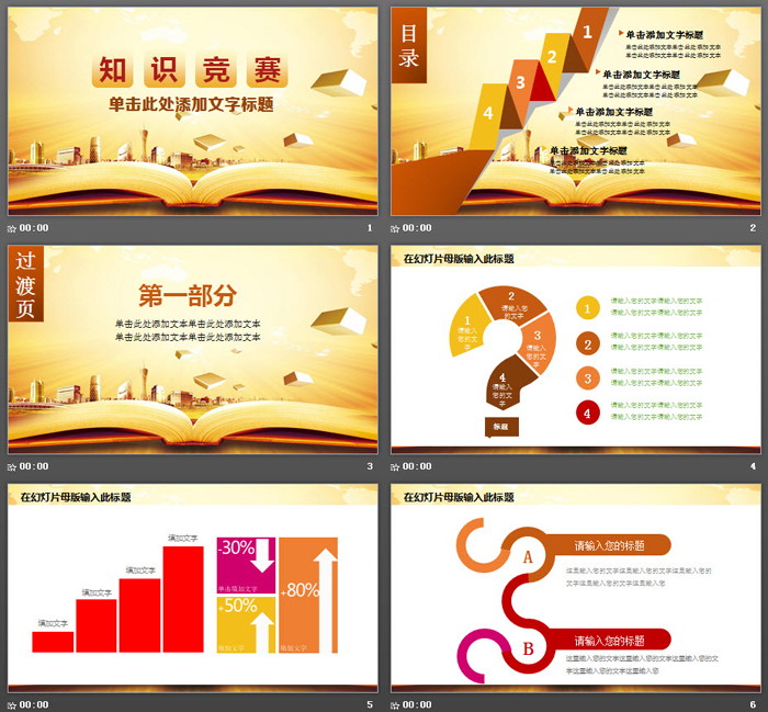 这是一套精美金色知识竞赛PPT模板,共27张。