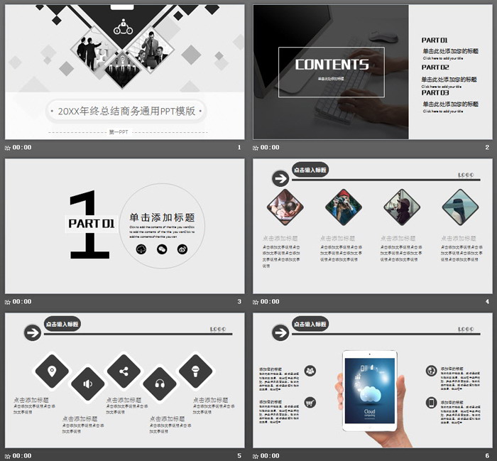 关键词:黑白个性商务PPT模板,通用工作总结幻灯片模板,个性工作汇报PPT模板,.PPTX格式;