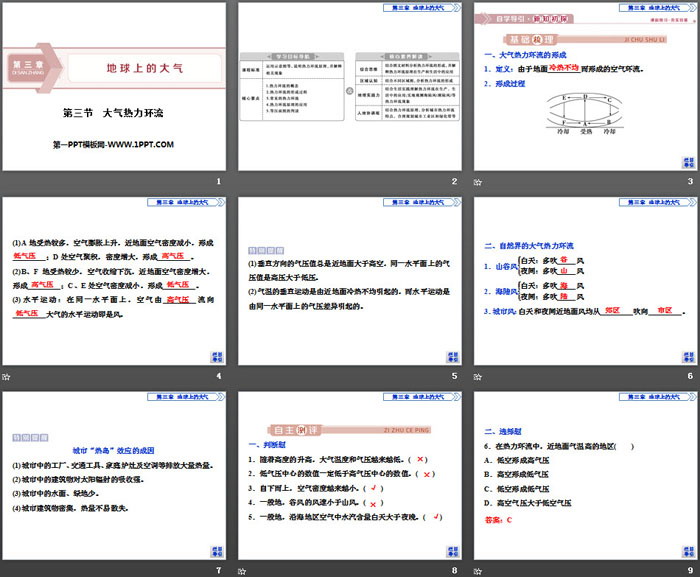 大气热力环流PPT,第二部分内容:自主测评