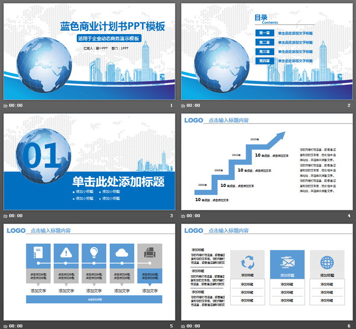 这是一套蓝色地球城市背景的,商业融资计划书PPT模板,共27张;