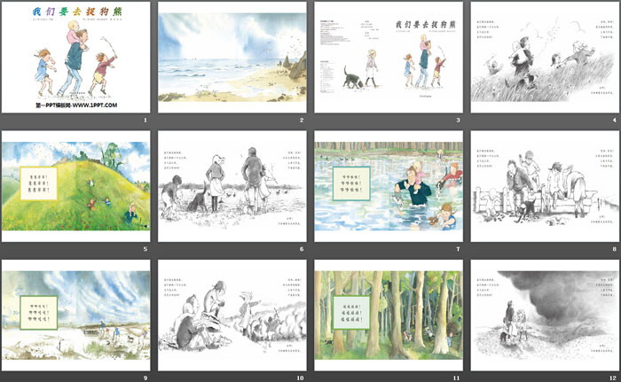 关键词:绘本故事PPT下载,儿童绘本故事幻灯片下载,我们要去捉狗熊PPT下载,.PPT格式;