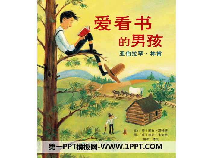 1809年,在美国肯塔基州的荒野中,有一个男婴出生了。母亲叫他亚伯拉罕,林肯是他的姓。玉米叶子铺成他的小床,熊皮是他的被子。他住的小屋,是森林里砍下来的圆木建造的。林肯在那间小木屋里,学会说第一句话。在屋里坚硬的泥土地上,学会走第一步路。柴火用来赶走寒冷,也用来烤玉米面包。兽皮做合页的门,开开关关。还有一个小窗户能看到外面的世界……