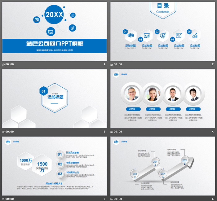 这是一套蓝色微立体公司简介PPT模板,共26张;