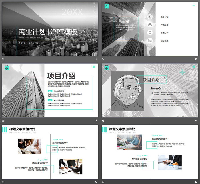 这是一套灰色大气扁平化设计风格的,商业融资计划书PPT模板,共24张;