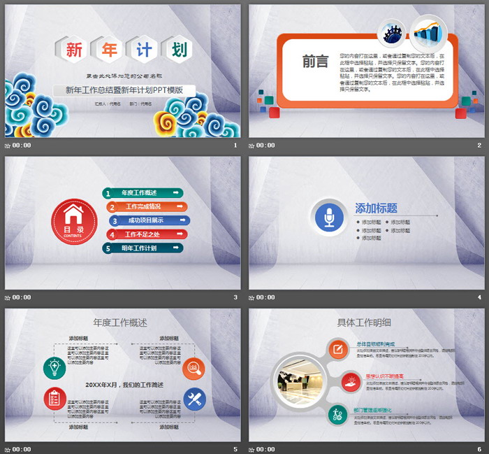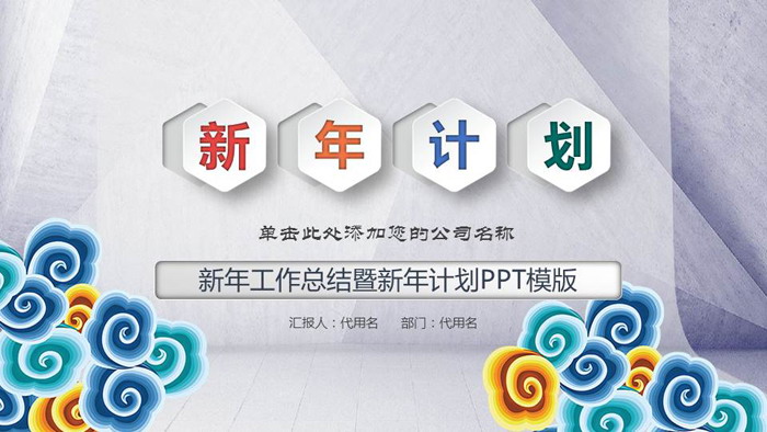 这是一套祥云背景的,微立体新年工作计划PPT模板,共41张;