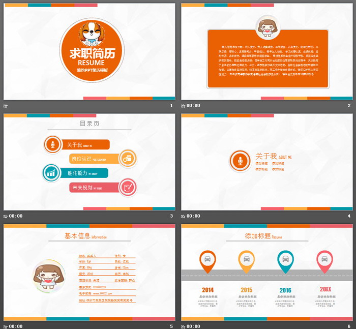 这是一套简洁彩色个人简历PPT模板,共24张;