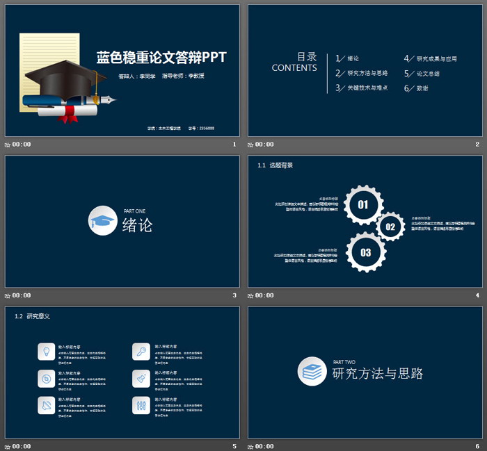 这是一套蓝色稳重风格的,毕业论文答辩PPT模板,共27张;