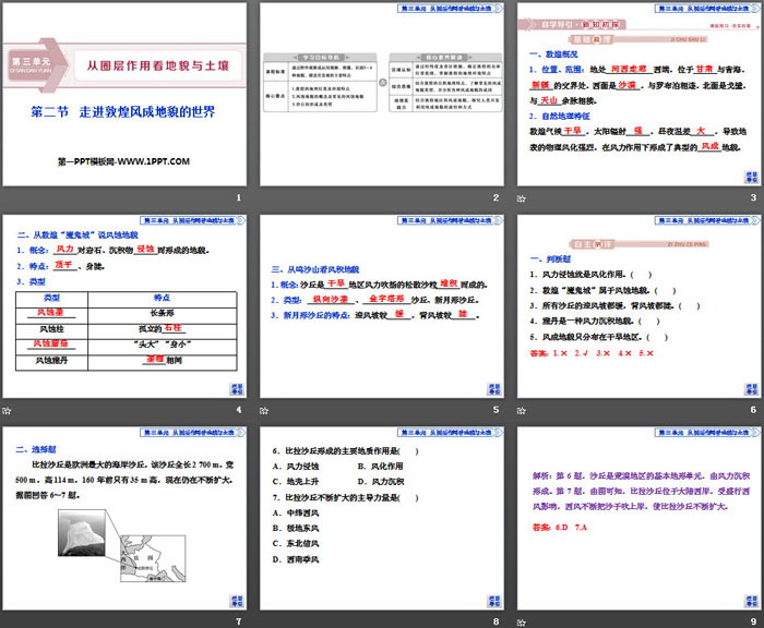 关键词:鲁教版高中地理必修一PPT课件免费下载,走进敦煌风成地貌的世界PPT下载,从圈层作用看地貌与土壤PPT下载,.PPT格式;