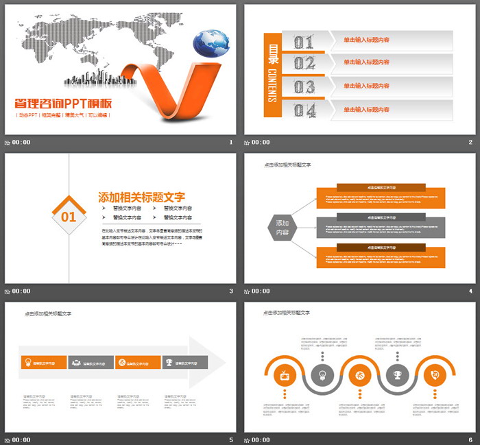 这是一套橙色管理咨询PPT模板,共26张;