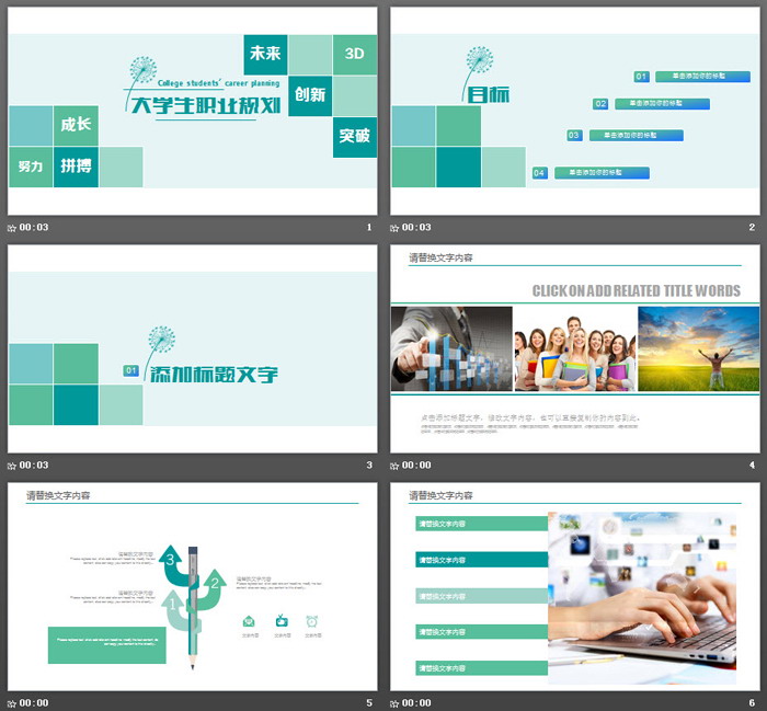 关键词:绿色清新幻灯片模板,动态大学生职业规划PPT模板免费下载,.PPTX格式;