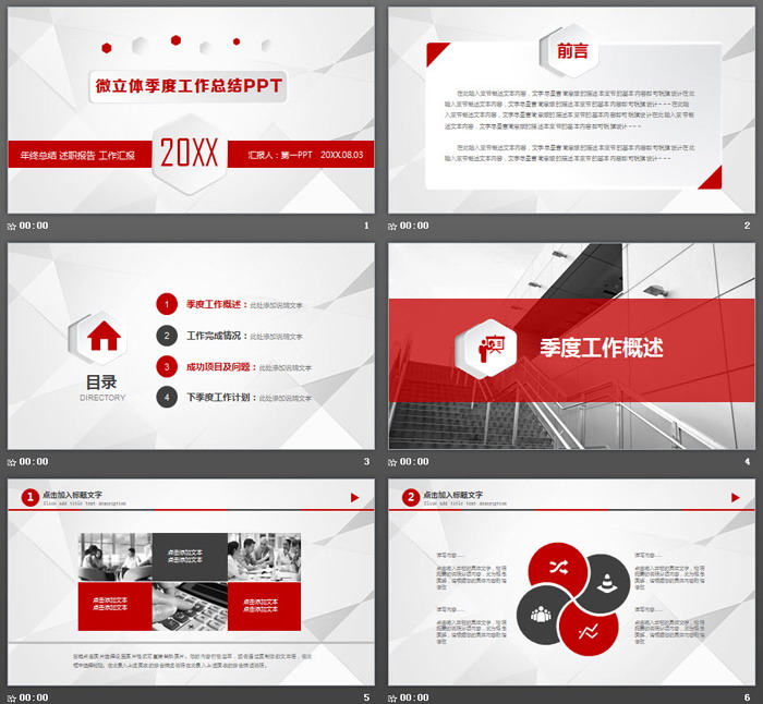 关键词:微立体风格幻灯片模板,动态工作总结PPT模板免费下载,.PPTX格式;