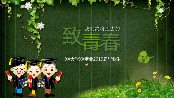 这一套绿色藤蔓植物背景的,《致青春》主题同学相册PPT模板,共10张;
