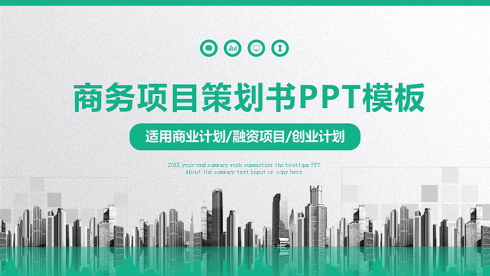 关键词:绿色扁平化商业融资计划书PowerPoint模板,动态建筑背景PPT模板免费下载,.PPTX格式;