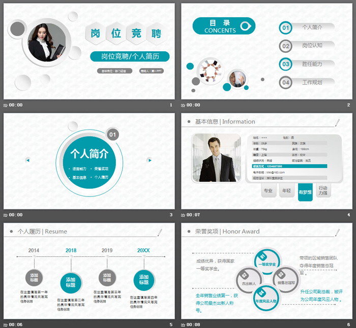 这是一套蓝色微立体岗位竞聘个人简历PPT模板,共24张;