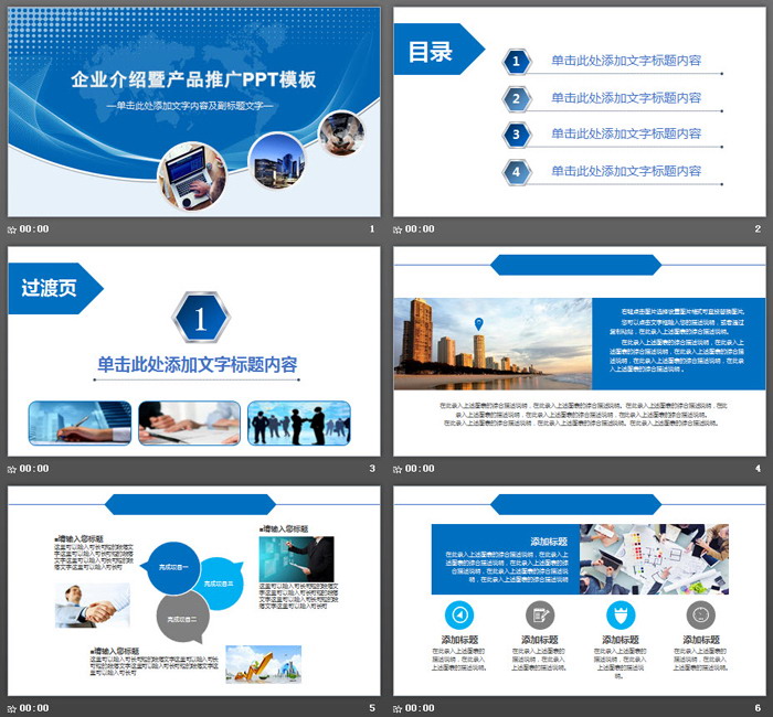 关键词:蓝色企业简介幻灯片模板,动态产品介绍PPT模板免费下载,.PPTX格式;