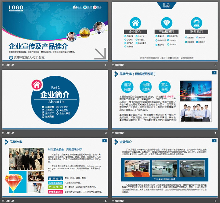 关键词:蓝色通用企业宣传幻灯片模板,产品介绍、产品展示PPT模板免费下载,.PPTX格式;