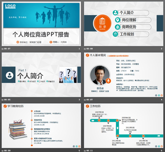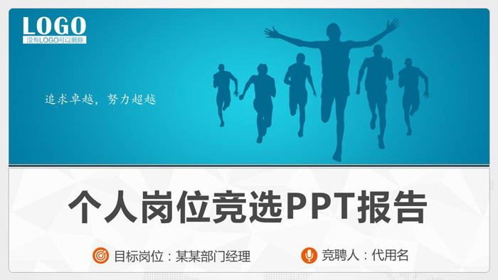 这是一套奔跑剪影背景的个人竞聘报告PPT模板,共28张;