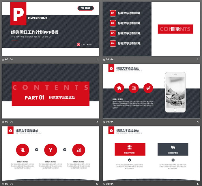 这是一套简洁红黑扁平化工作计划PPT模板,共25张;