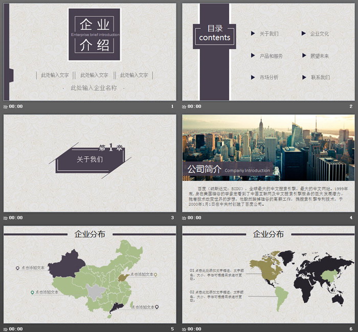 这是一套简约古典风格的,企业介绍PPT模板,共31张;