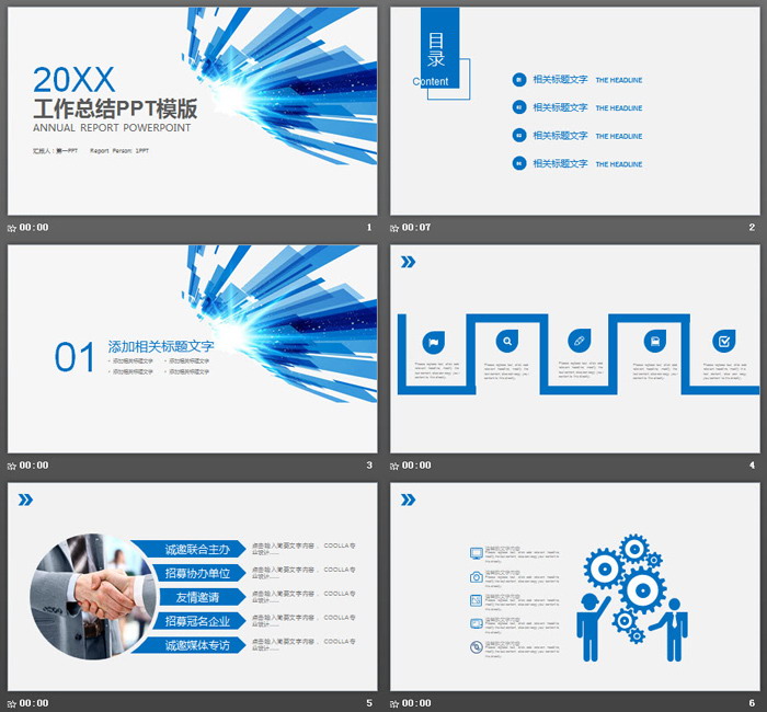 关键词:蓝色通用工作总结PPT模板,简洁抽象幻灯片背景图片,.PPTX格式;