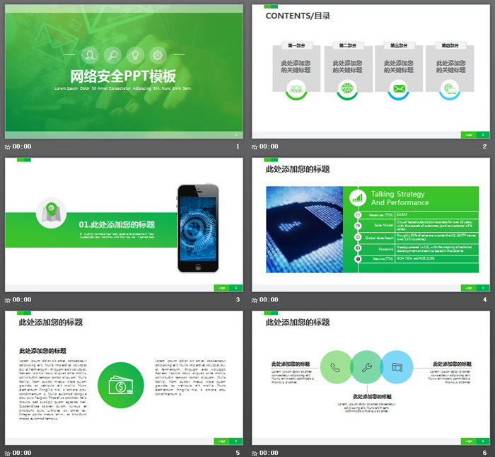 这是一套绿色网络安全主题PPT模板,共30张;
