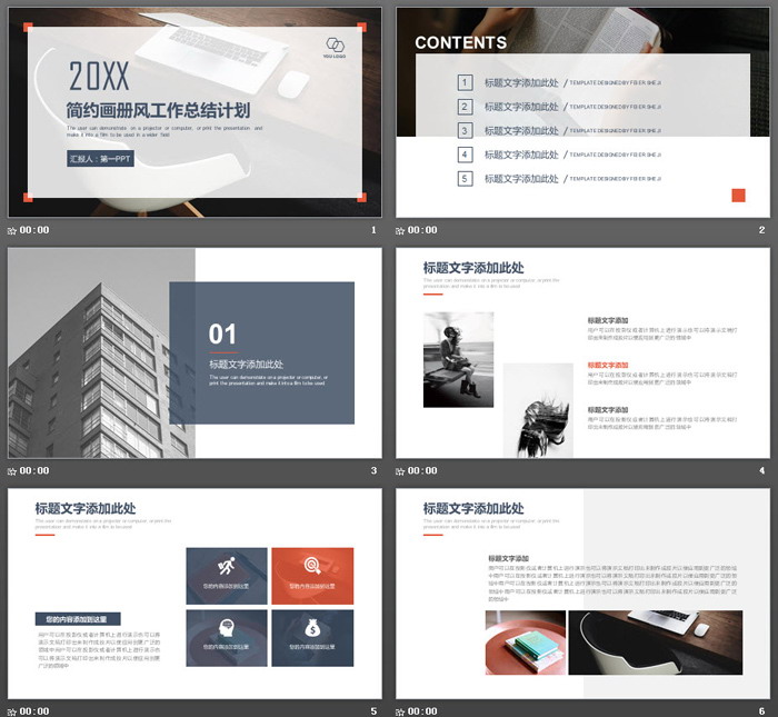 这是一套简约画册风格的,通用工作总结计划PPT模板,共25张;