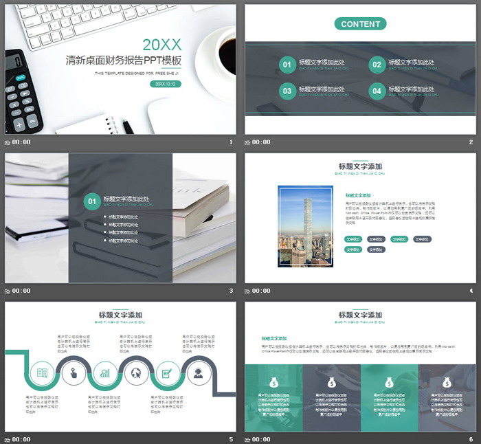 这是一套清新办公桌面背景财务报告PPT模板,共24张;