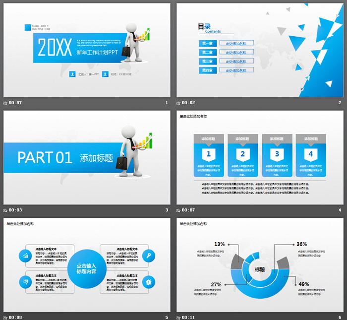 本模板适合用于制作各类新年工作计划PowerPoint,以及通用工作总结PPT等。.PPTX格式;