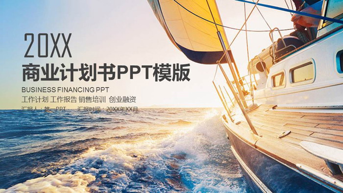 这是一套帆船背景的商业融资PPT模板,共24张;
