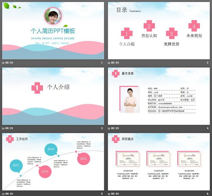这一套小清新风格的医生护士个人简历PPT模板,共20张;