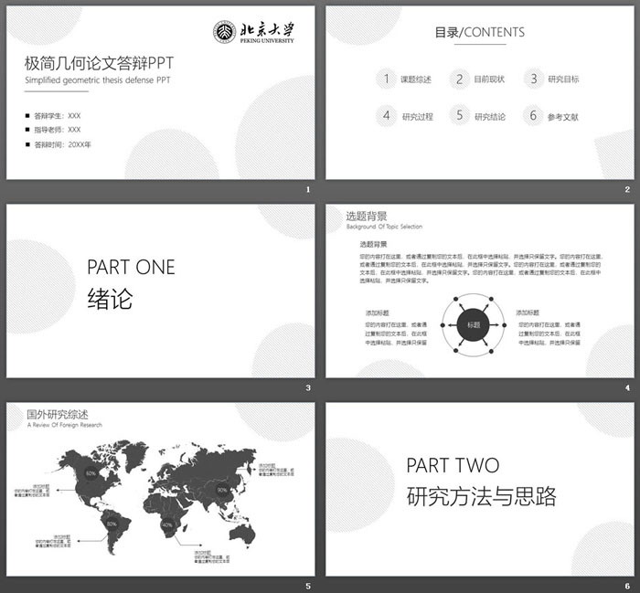 这是一套极简灰色细线背景的,毕业答辩PPT模板,共23张;