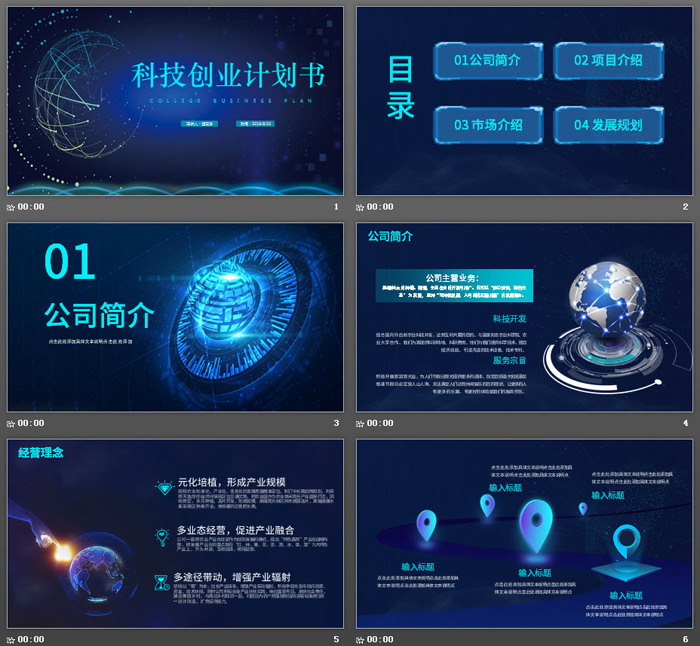 幻灯片模板内容页,对创业项目进行了详细介绍。另外使用了多张带有科技感的,点线图片、粒子图片、科技星球等图片进行排版。