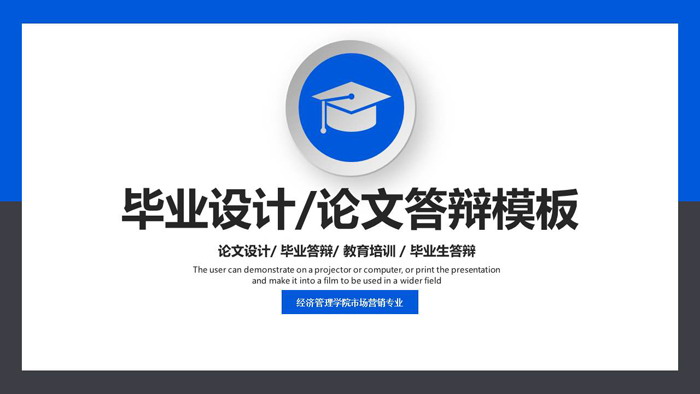 幻灯片模板使用了上半边蓝色下半边灰色的底色。中间放置白色矩形文本区域,用于放置毕业论文答辩PPT内容。