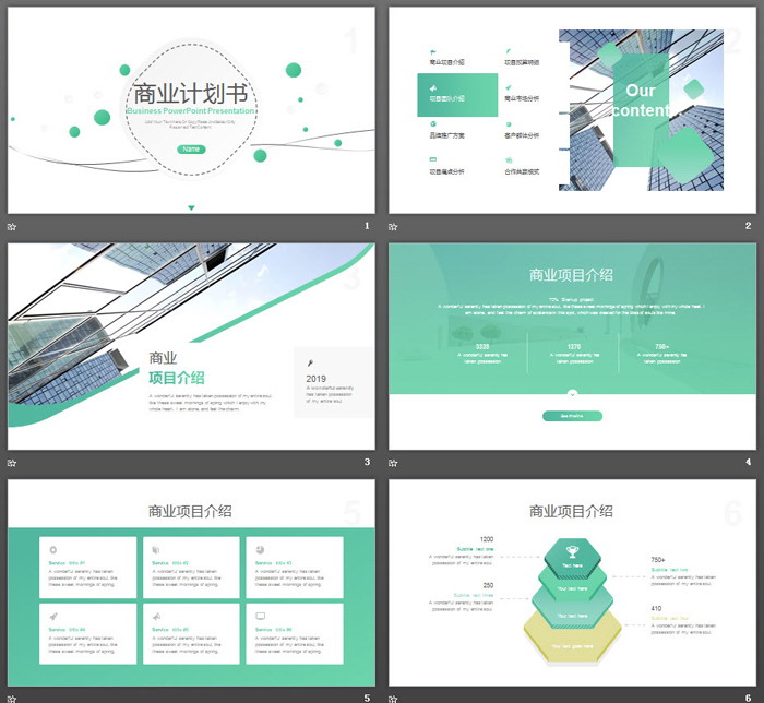 这是一套绿色简洁风格的,商业计划书PPT模板,共25张;