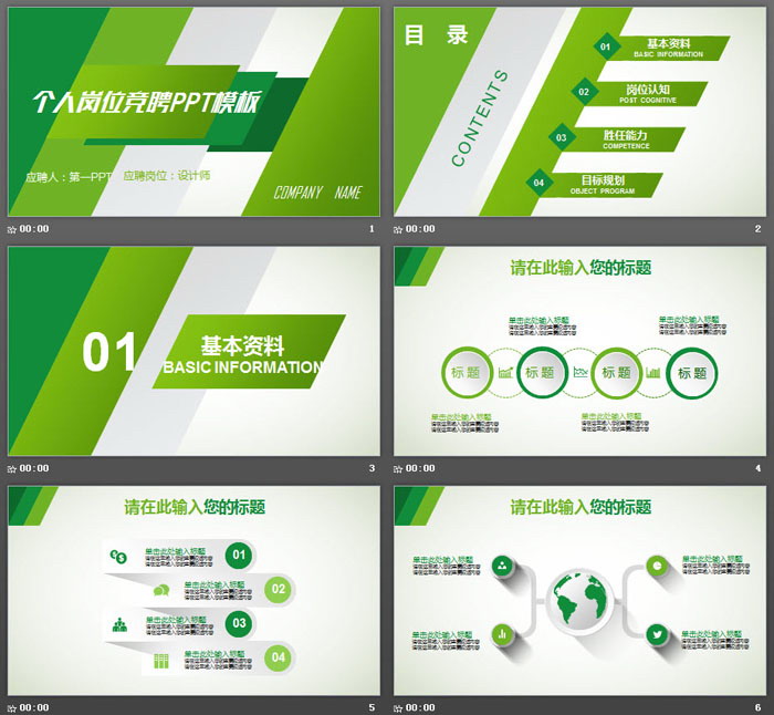 关键词:绿色清新幻灯片模板,个人竞聘PPT模板免费下载,.PPTX格式;