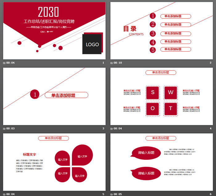 PowerPoint模板内容页,由27张红色灰色搭配的扁平化幻灯片图表制作。