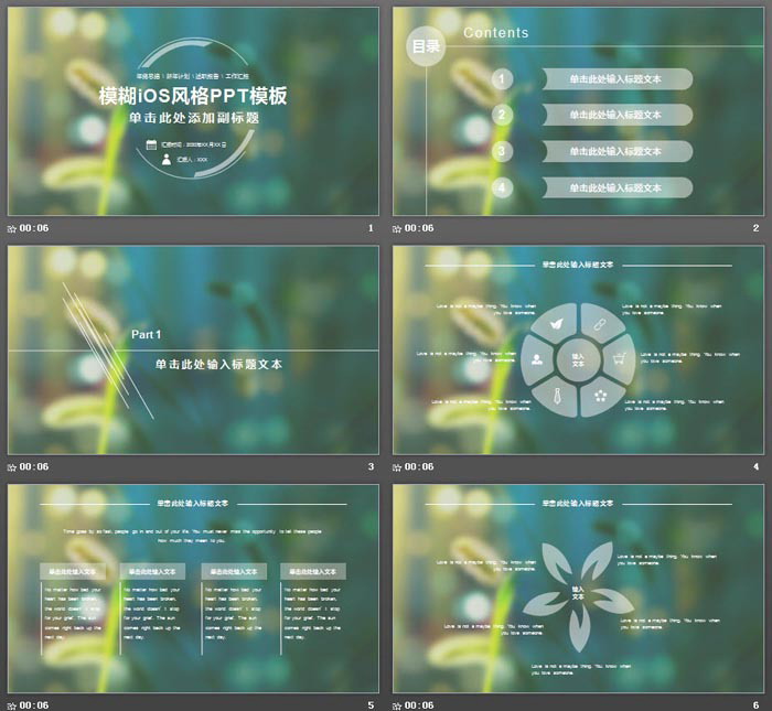 这是一套绿色模糊iOS风格的,个人述职报告PPT模板,共25张;