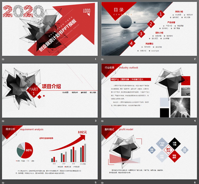 关键词:红黑配色创业融资计划书PPT模板,立体图形PPT背景图,.PPTX格式;