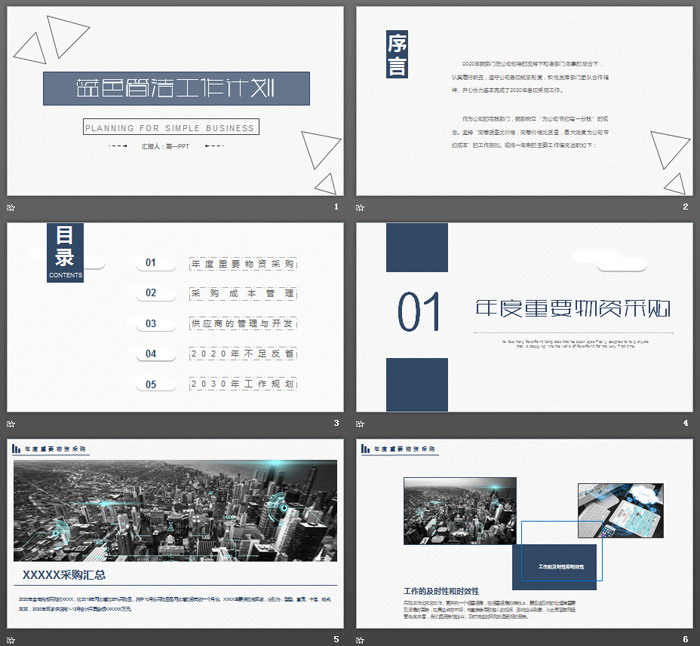 这是一套蓝色简洁三角形背景的,工作计划PPT模板,共26张;