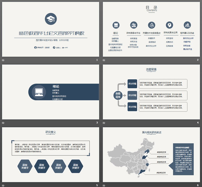 这是一套极简设计的,蓝色毕业论文答辩PPT模板,共31张;