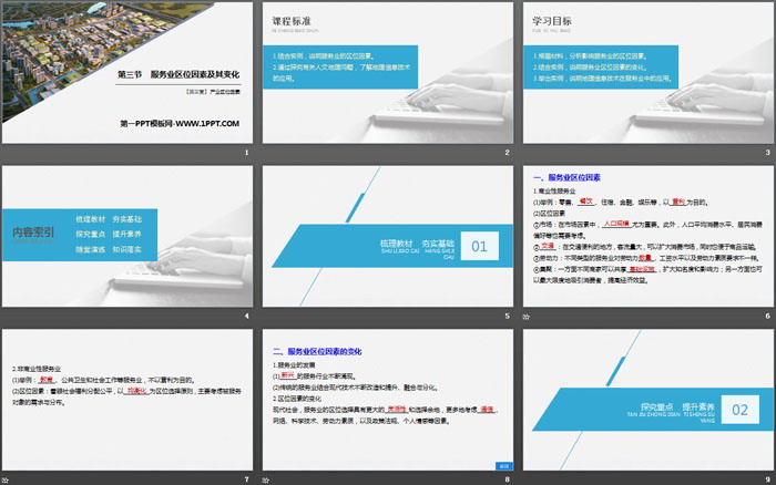 关键词:人教版高中地理必修二PPT课件免费下载,服务业区位因素及其变化PPT下载,产业区位因素PPT下载,.PPT格式;