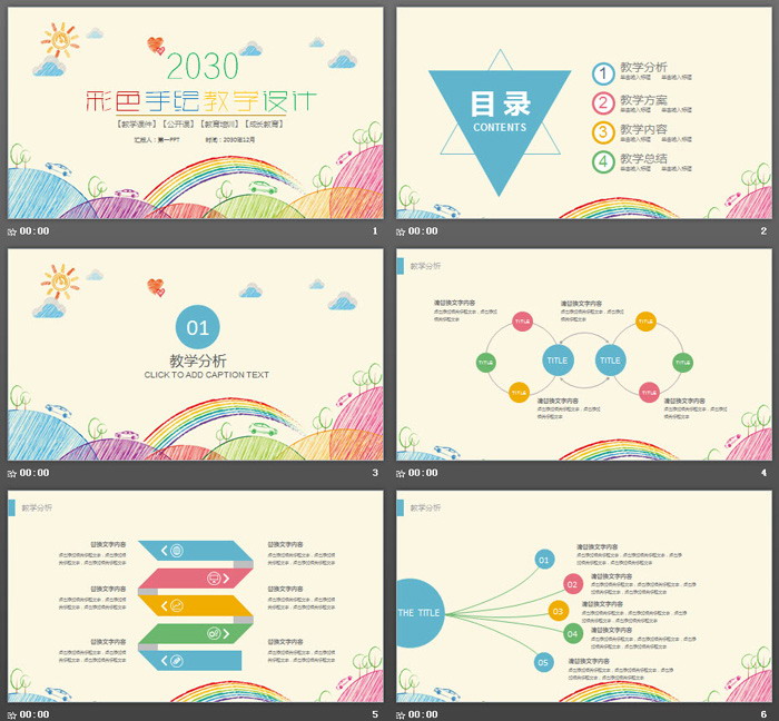 这是一套彩色手绘风格的,教学设计PPT模板,共24张;